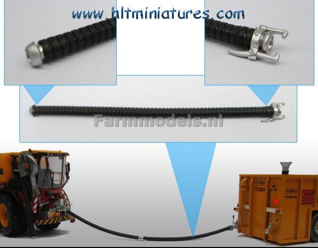 Coupling hose "male-female", new version 1:32 scale Coupling hose on one side with a "male" coupling, and the other side of a "female" coupling, in order to extend manure hoses to reach the container or pit with a manure tank or to connect a container to another manure tank, length approx. 135 mm Diameter 5.1 mm 1:32 scale Suitable for ages 14 years+ See more like this...