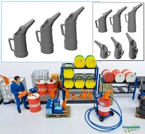 3x POURING SPOUTS (3 different sizes) Material: RESIN , can be painted in the desired color 1:32 Nice to decorate your workshop, service bus or diorama Please note: These items are 3D printed in-house, and you must treat them yourself. Run the items over a piece of sandpaper to sand off the "support" points of the 3D printing. Can then be sprayed in the desired color. We recommend spraying a plastic primer first, and then the lacquer. Item can easily be sawn or cut to length... In short, a typical Dutch product, produced and processed in the Netherlands. View full description