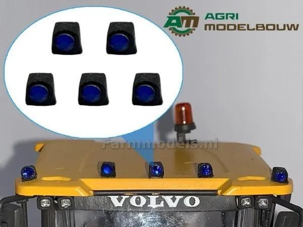 5 X Blue Toplights Suitable for truck or tractor cab Some assembly required. Use odourless glue to avoid plastic 'misting' UHU Por 1:32 Scale.