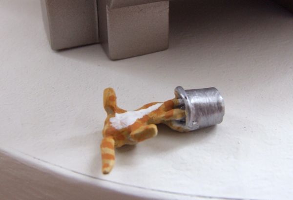 White Metal Cat on back with Silver Bucket PAINTED TO ORDER - PLEASE ALLOW 7 DAYS FOR DISPATCH 1:32 Scale Hand-painted, Ready to Display