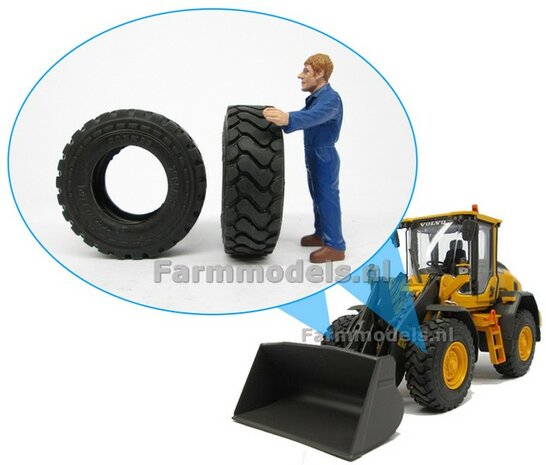 2x original Michelin 20.5R25 (Shovel) tires, Ø 45.6 mm (Volvo L series Agri Collectables) 1:32 34261