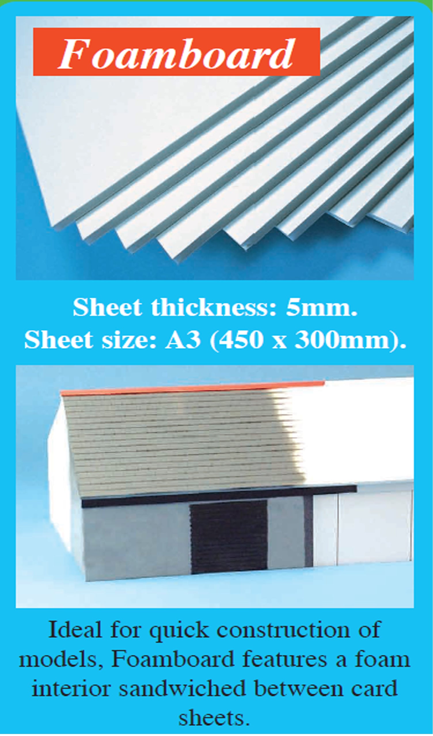 Standard A3 Foam Board (29.7 x 42.0cm) 5mm thick Fits in between BFS-10 Plastruct I-Beams for shed walls Easily cuts with a craft knife Ideal for making model buildings in any scale Can be covered (plaster, clay, wallpaper etc) See more like this...