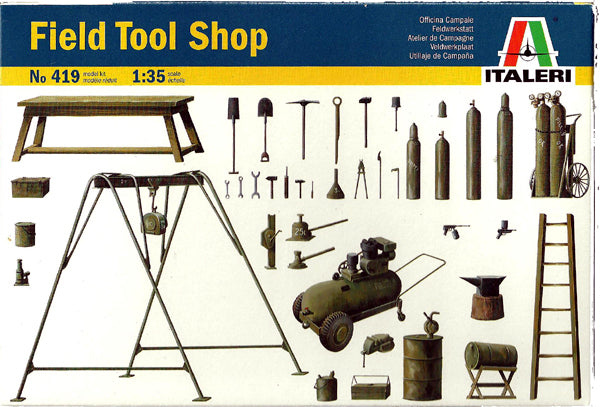 Italeri Tool Kit 1:32 Scale (Figure, tractor etc NOT Included, but available separately) Over 40 pieces, including bench, engine hoist, tanks, compressor etc. We recommend painting as many items as possible before removing from the sprues (tiny pieces are much more difficult to paint once youve removed them) Shown with a Universal Hobbies Tractor and HLT Miniatures Labourer with Toolbox (Not Included). Need Glue? We recommend Humbrol Precision Poly See more like this...
