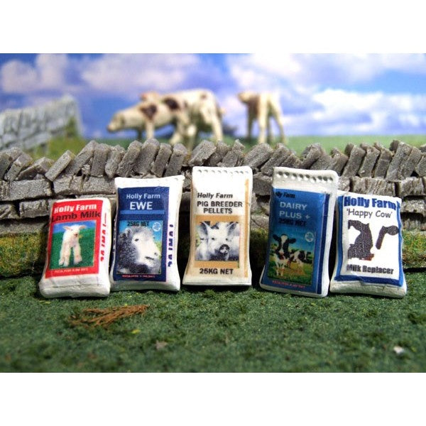 5x White Metal General Feed Sacks 1:32 Scale Each sack has a individual animal feed decal. All Designs are also available as: Stack of Sacks, Stacks of Sacks with Sacks Missing, Wrapped Sacks, Set of 3 and as an Individual 'open' Sack.
