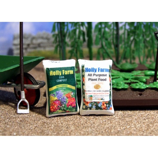 2x White Metal Garden Compost and Fertilizer Sacks 1:32 Scale Each sack has a individual decal. All Designs are also available as: Stack of Sacks, Stacks of Sacks with Sacks Missing, Wrapped Sacks, Set of 3 and as an Individual 'open' Sack.