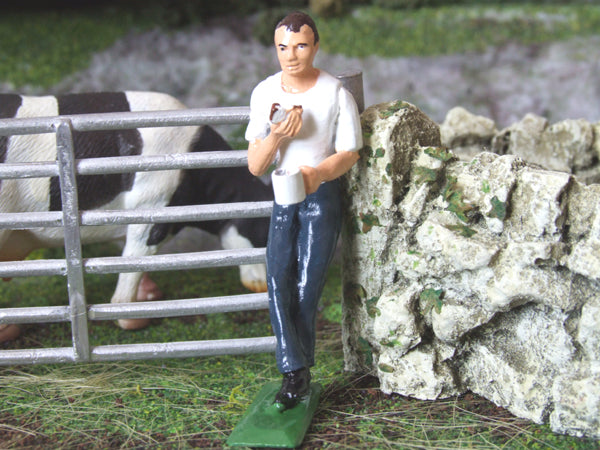 White Metal, Hand-Painted  Farmer Having Lunch Figure Designed to lean against, gate posts, bales, wall, etc.  Two colour schemes available FIGURE ONLY INCLUDED IN THIS SALE See more like this...